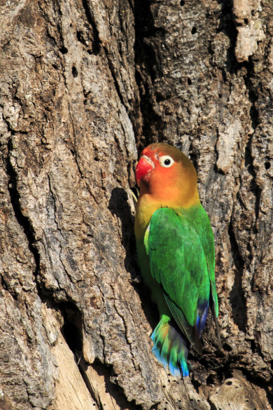 Endlich! Es zeigte sich so etwas wie Sonne am Himmel und Ndutu präsentierte sich mit wunderschönen Lichtstimmungen. Da sah doch alles gleich noch viel freundlicher aus. Jochen und ich packten unsere Siebensachen zusammen und für den ersten Morgenkaffee und die erste Morgenzigarette suchten wir die gemütliche Launch auf. Das Axelchen schlich auch schon mit Kamera bewaffnet gegen 06:30 Uhr durch den Garten. Heute lohnte es sich aber wirklich und die Pfirsichköpfchen posieren noch einmal gekonnt vor unserer Linse.