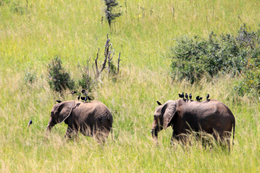 Für uns ging es jedoch erst einmal zügig gen Norden, da wir uns ja noch um ein Bett für die nächsten zwei Nächte kümmern mussten. Und so verließen wir den Park gegen 15:00 Uhr schon wieder durch das Tangi Gate. Auf der Teerstraße, die Pakwach mit Karuma verbindet sind wir falsch nach links abgebogen und haben so noch eine kurze Stippvisite in Pakwach eingelegt. Belohnt werden wir aber trotzdem. Bereits außerhalb des Nationalparks können wir in der Savanne direkt vor der Nil-Brücke eine größere Elefantenherde mit Jungtieren beobachten.