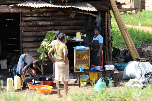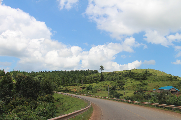 Der Weg führte uns durch malerische Landschaften, die ebenso gut in den Bayerischen Wald gepasst hätten - zumal der Himmel sich auch größtenteils in Blau mit weißen Wölkchen präsentierte. Einzig die mal mehr oder weniger hohen Speed-Bumbs rüttelten uns ordentlich durch, kosteten Zeit und sind typisch ostafrikanisch. In größeren Orten herrschte geschäftiges Treiben. Mit Menschen überladene Trucks, sorgfältig arrangierte Obst- und Gemüsestände, bunte Chinaplastikwaren-Shops, auf klapprigen Rädern transportierte Haustiere und wie immer todesmutig fahrende Schwarze.